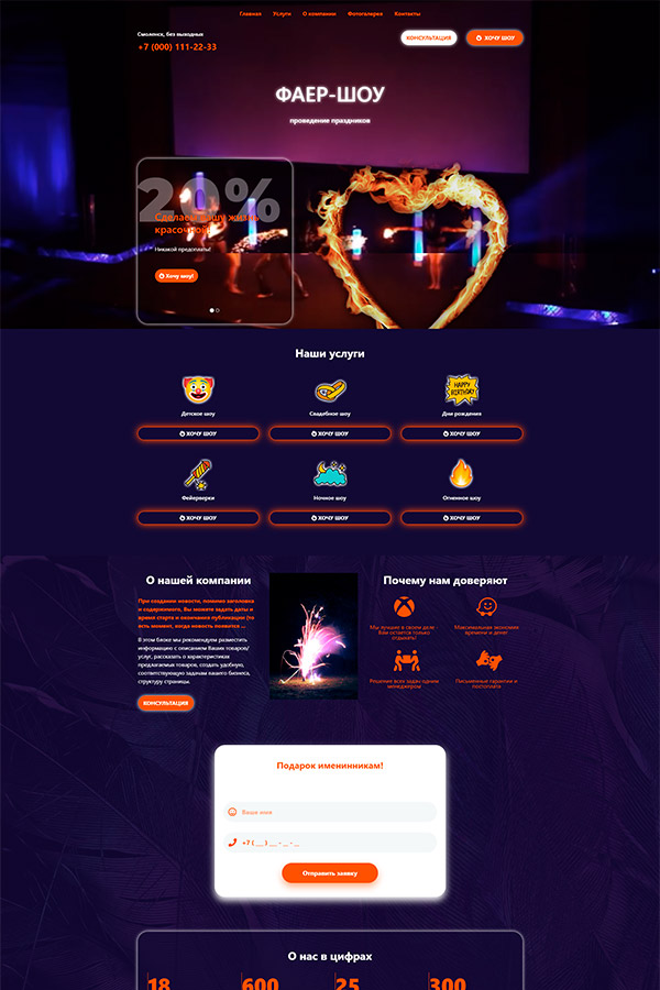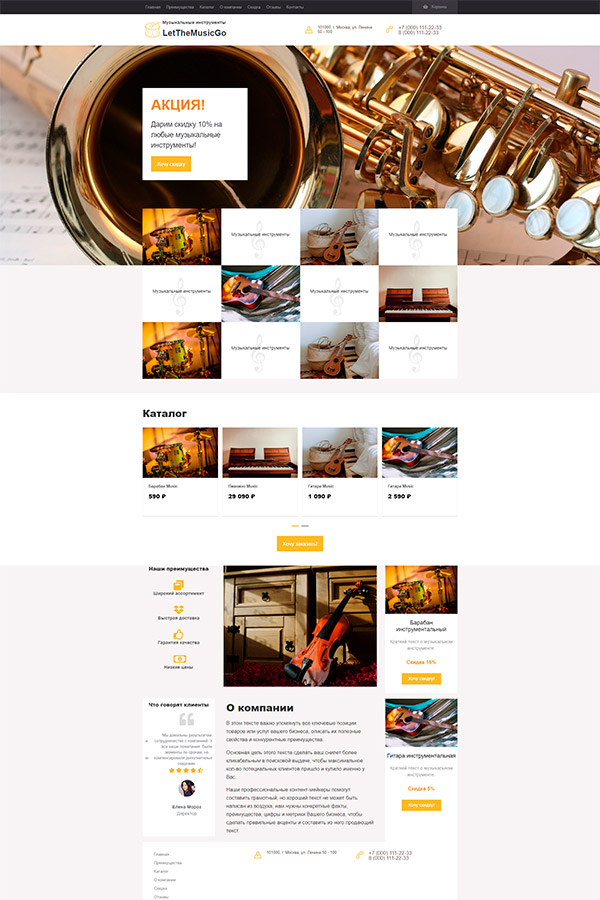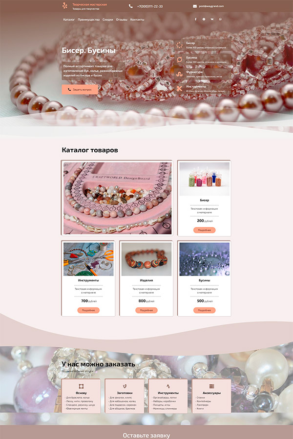 Досуг, развлечения, искусство: визитка, лендинг, каталог, магазин