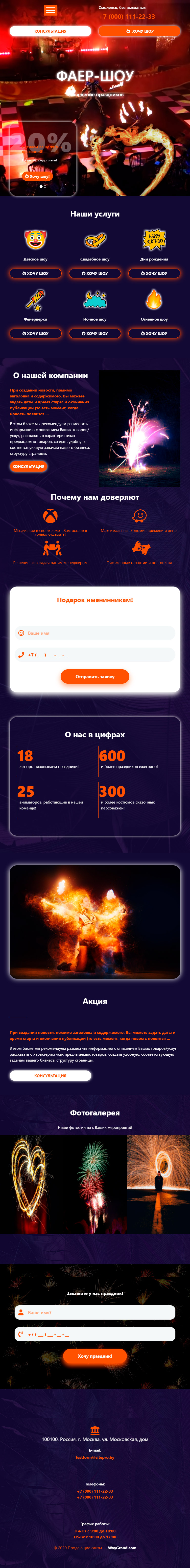 Закажите готовый продающий сайт лендинг #0451201 в Нижневартовске за 1-3 дня «под ключ»: свёрстан, отрисован и готов к рекламе. Тематика шаблона «Фаер Шоу».