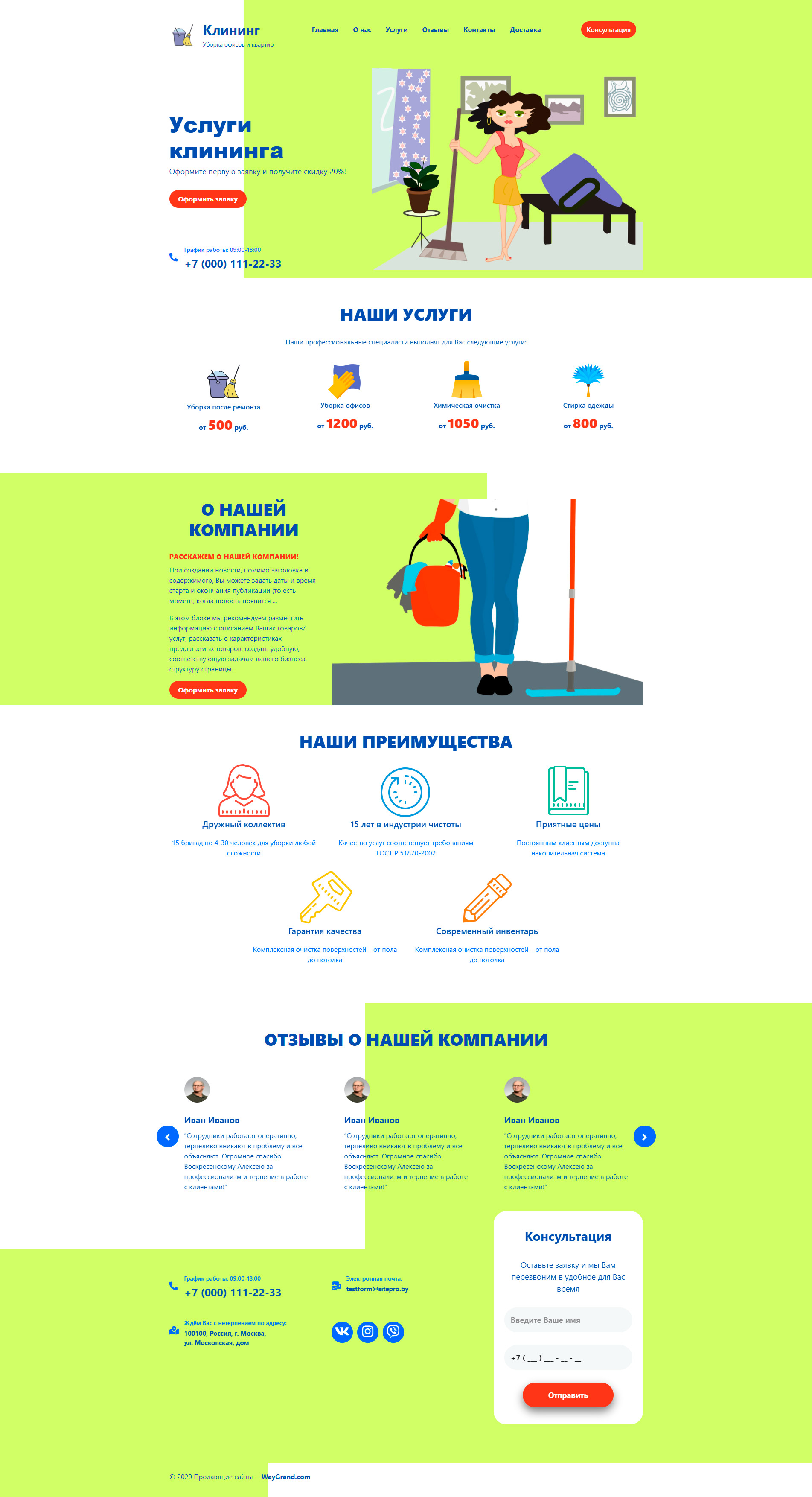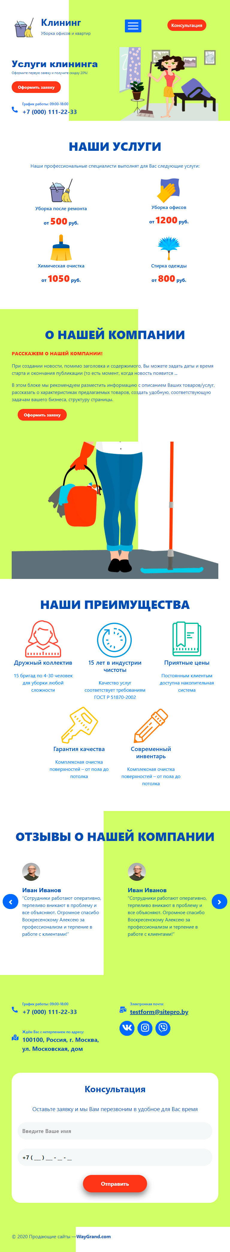 Закажите готовый продающий сайт лендинг #0628202 в Нижневартовске за 1-3 дня «под ключ»: свёрстан, отрисован и готов к рекламе. Тематика шаблона «Услуги клининга».