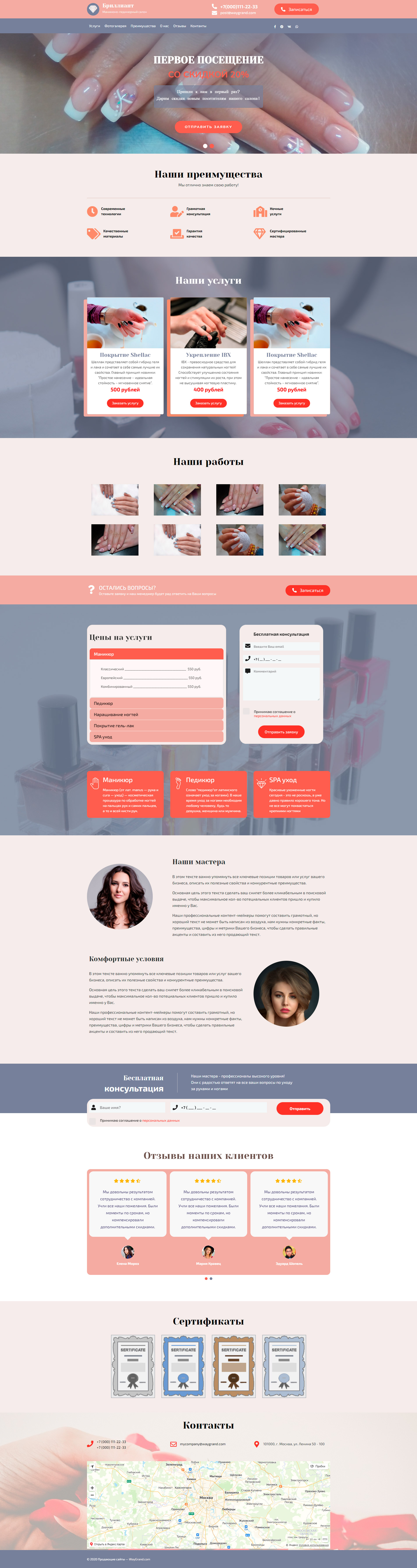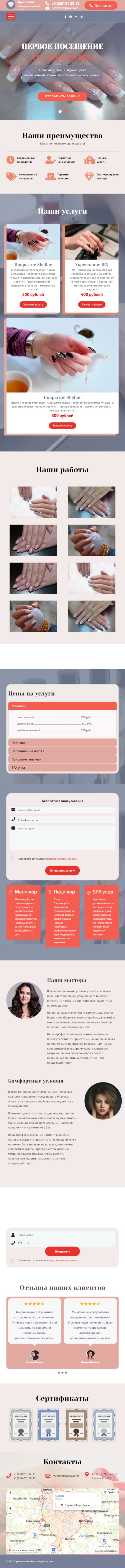 Закажите готовый продающий сайт лендинг #1107201 в Нижневартовске за 1-3 дня «под ключ»: свёрстан, отрисован и готов к рекламе. Тематика шаблона «Салон маникюра и педикюра».