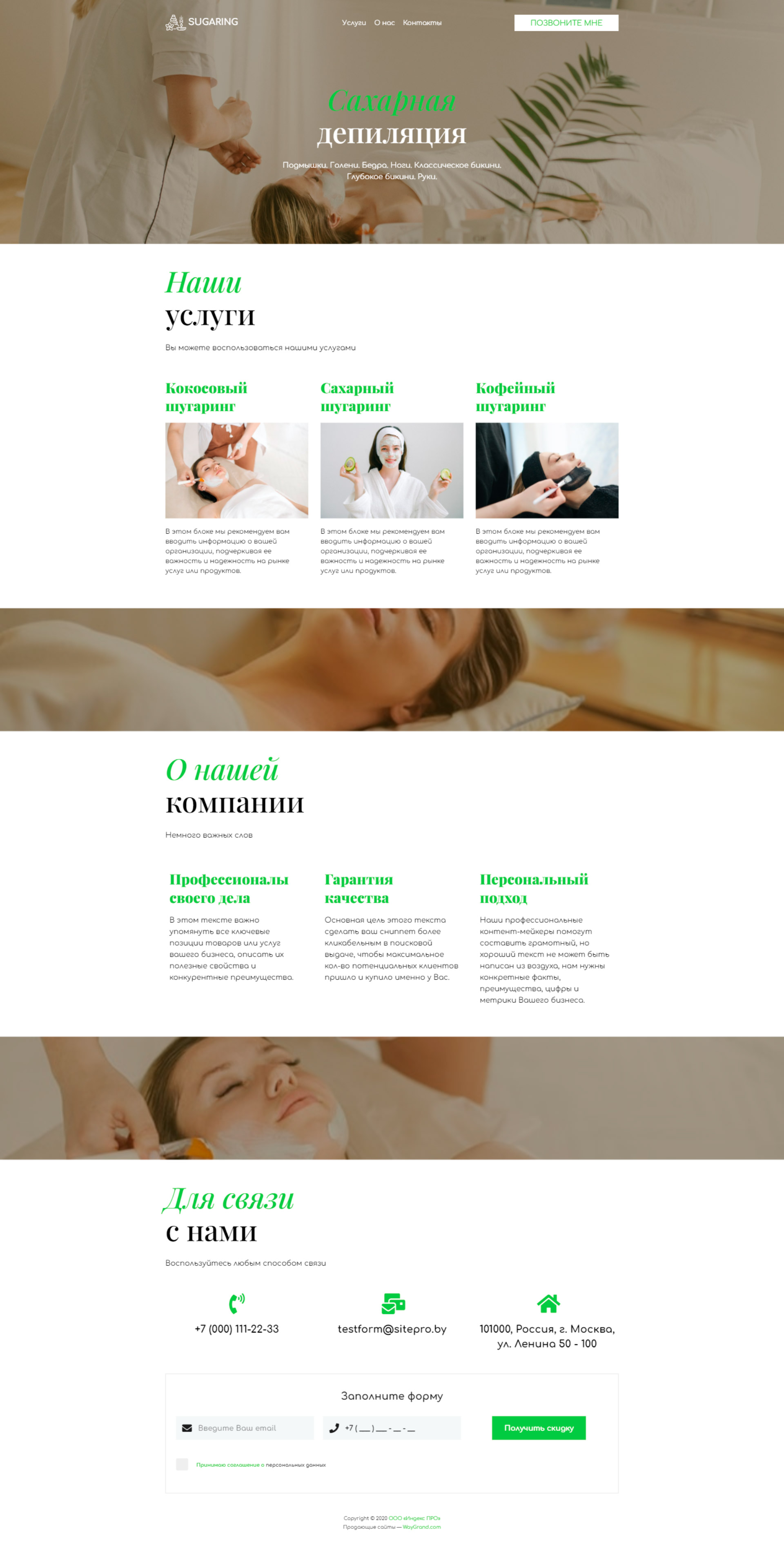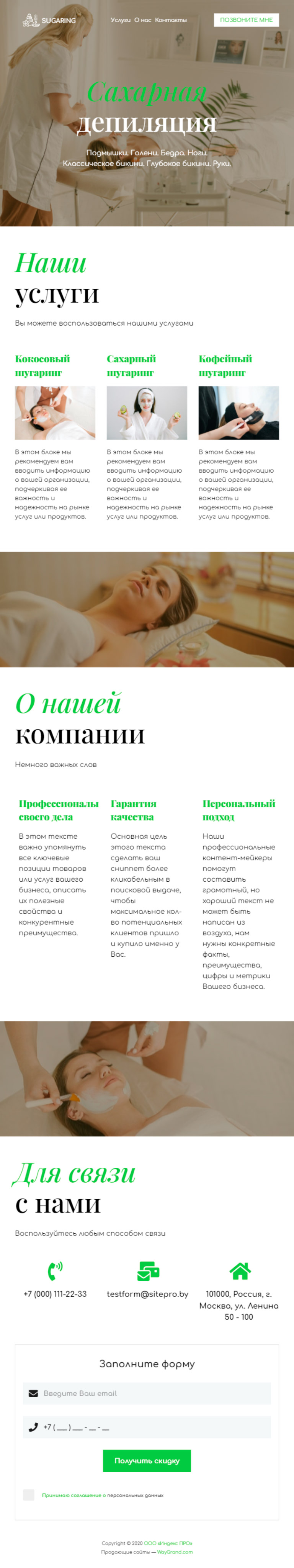 Закажите готовый продающий сайт визитка #1105101 в Нижневартовске за 5-7 дня «под ключ»: свёрстан, отрисован и готов к рекламе. Тематика шаблона «Сахарная депиляция/Шугаринг».