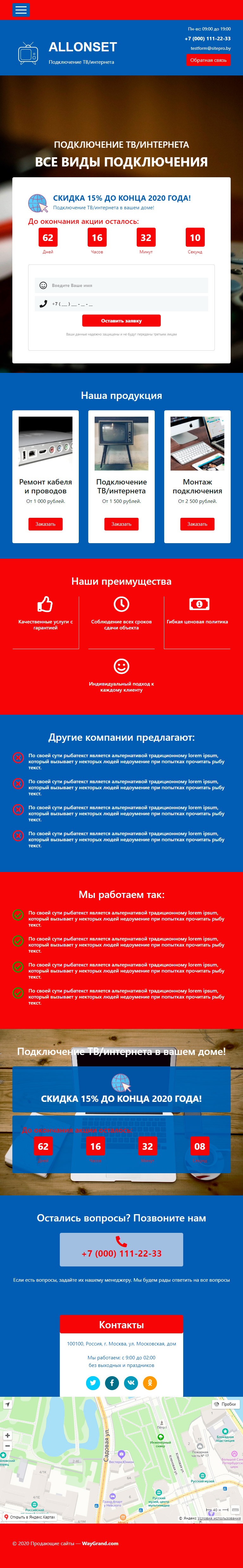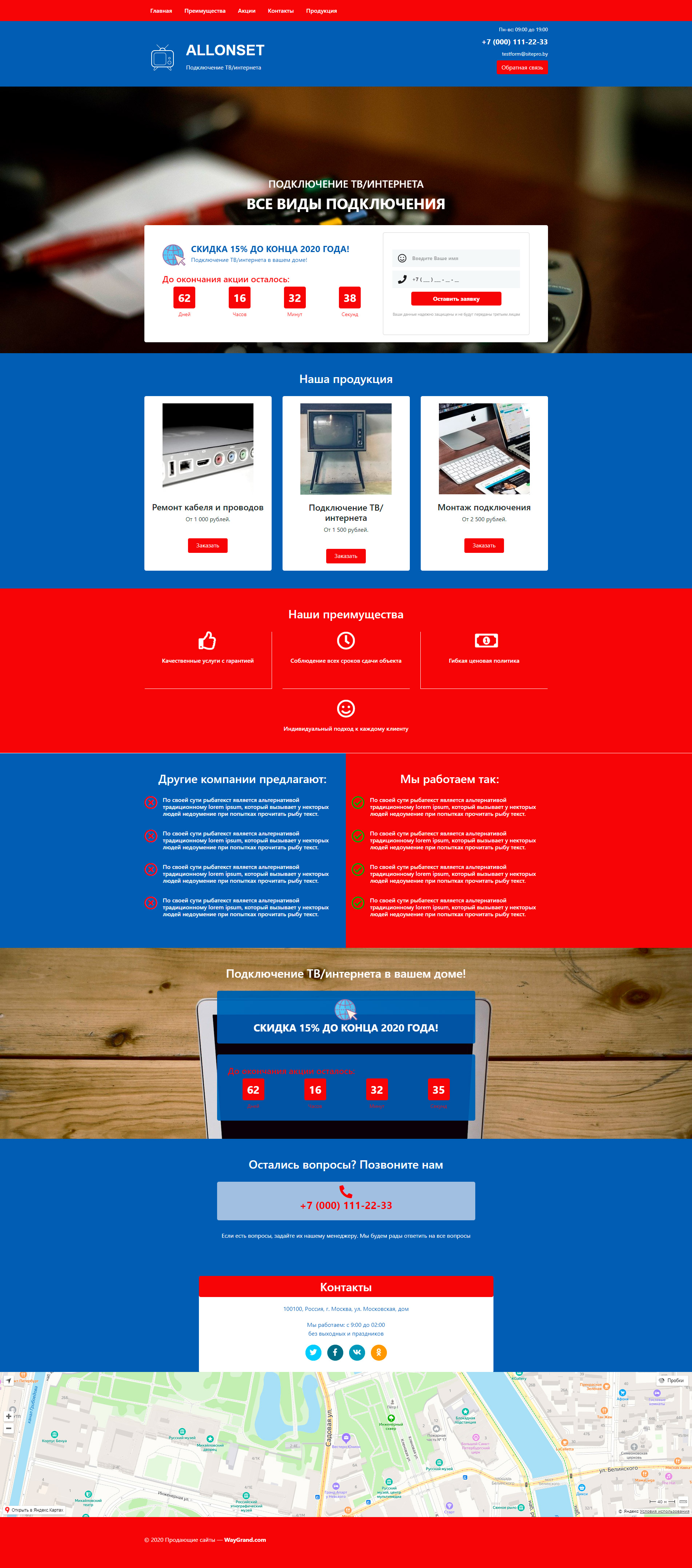 Закажите готовый продающий сайт лендинг #0718201 в Нижневартовске за 1-3 дня «под ключ»: свёрстан, отрисован и готов к рекламе. Тематика шаблона «Подключение ТВ/интернета».