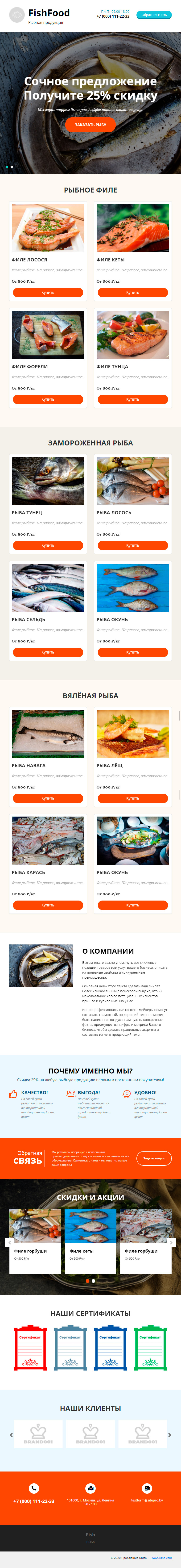 Закажите готовый продающий сайт лендинг #1731201 в Нижневартовске за 1-3 дня «под ключ»: свёрстан, отрисован и готов к рекламе. Тематика шаблона «Рыбная продукция».