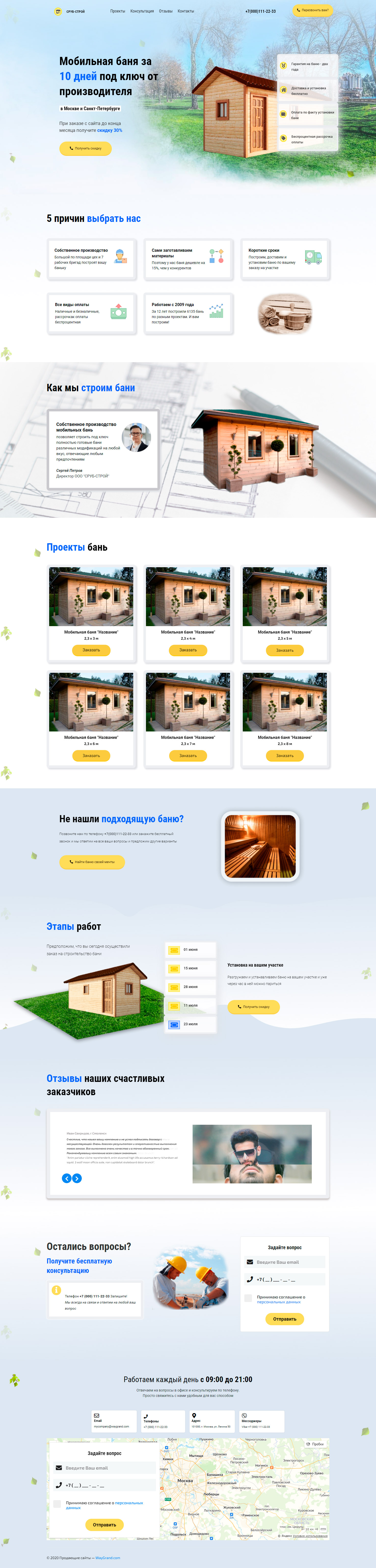 Закажите готовый продающий сайт лендинг #2172203 в Нижневартовске за 1-3 дня «под ключ»: свёрстан, отрисован и готов к рекламе. Тематика шаблона «Мобильная баня».