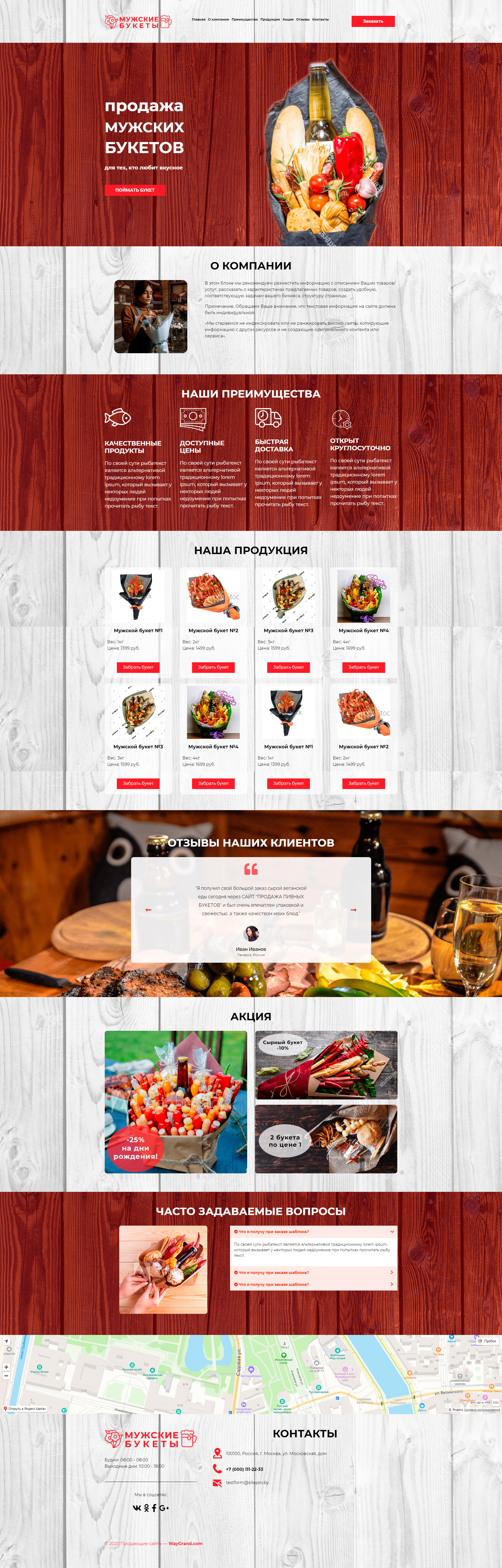 Закажите готовый продающий сайт лендинг #2404204 в Нижневартовске за 1-3 дня «под ключ»: свёрстан, отрисован и готов к рекламе. Тематика шаблона «Мужские букеты».