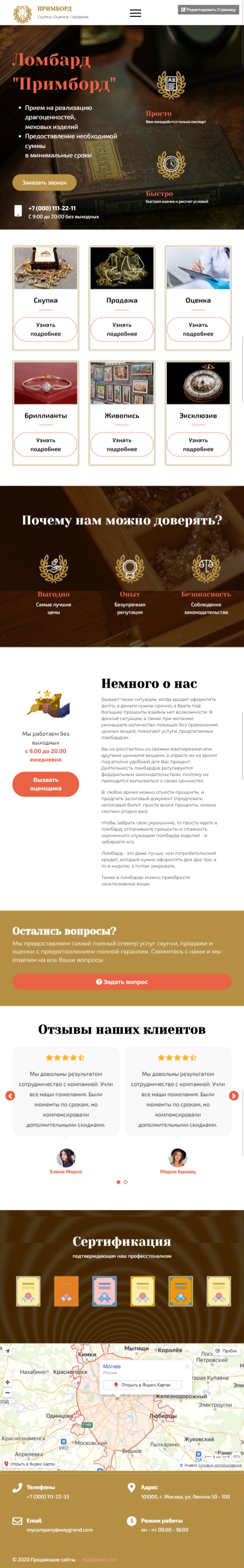 Закажите готовый продающий сайт лендинг #2408201 в Нижневартовске за 1-3 дня «под ключ»: свёрстан, отрисован и готов к рекламе. Тематика шаблона «Ломбард».