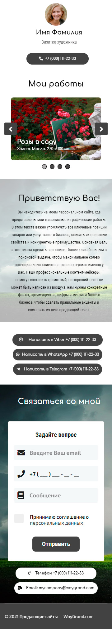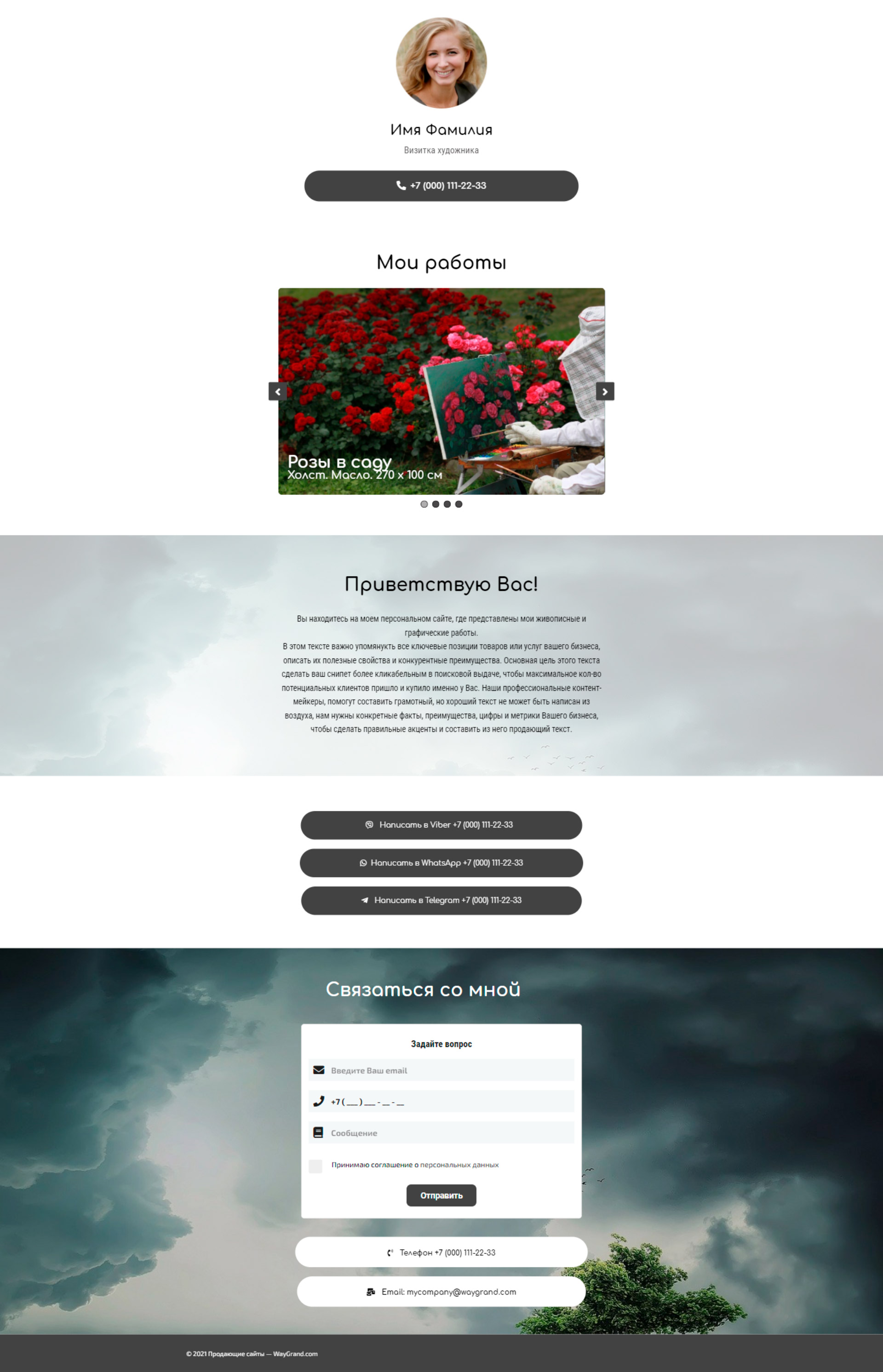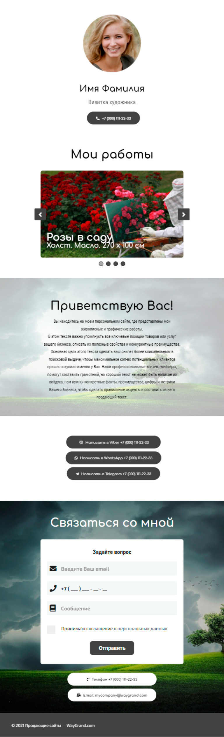 Закажите готовый продающий сайт визитка #0826101 в Нижневартовске за 5-7 дня «под ключ»: свёрстан, отрисован и готов к рекламе. Тематика шаблона «Визитка художника».