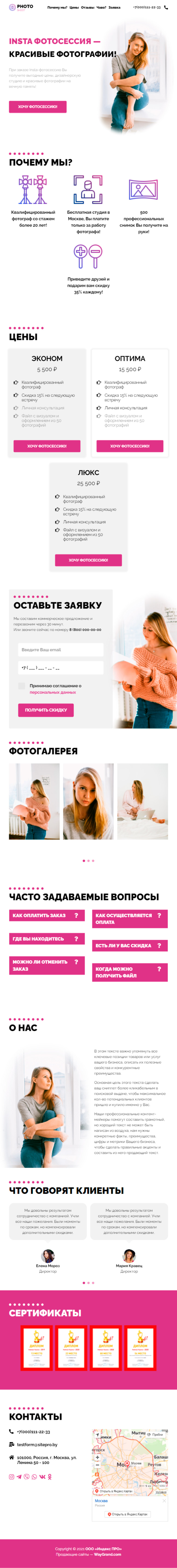Закажите готовый продающий сайт лендинг #1853201 в Нижневартовске за 1-3 дня «под ключ»: свёрстан, отрисован и готов к рекламе. Тематика шаблона «INSTA фотосессия — лучший подарок».