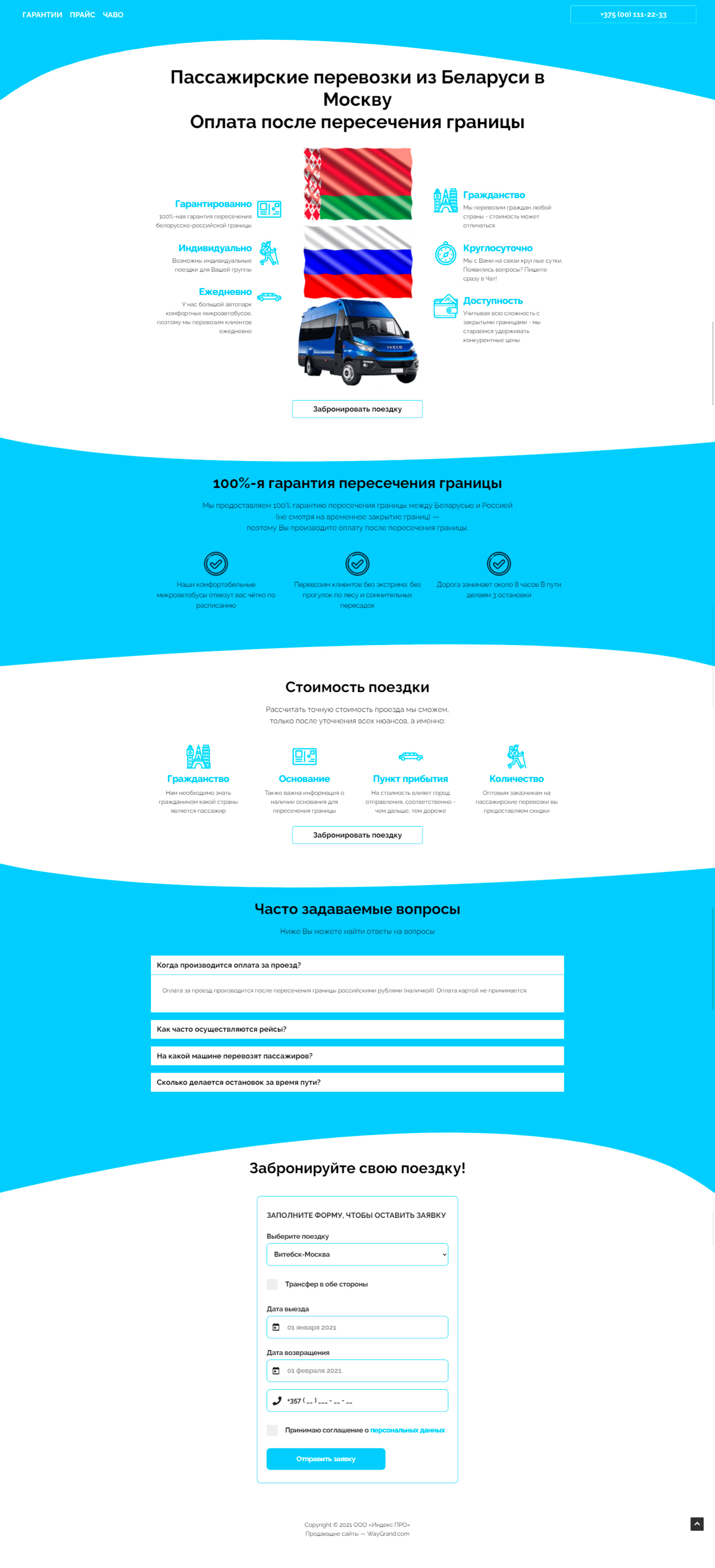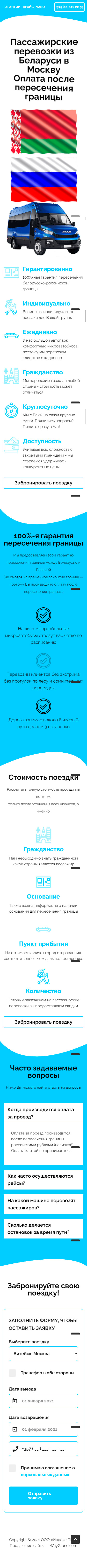 Закажите готовый продающий сайт лендинг #2528204 в Нижневартовске за 1-3 дня «под ключ»: свёрстан, отрисован и готов к рекламе. Тематика шаблона «Пассажирские перевозки из Беларуси в Москву».