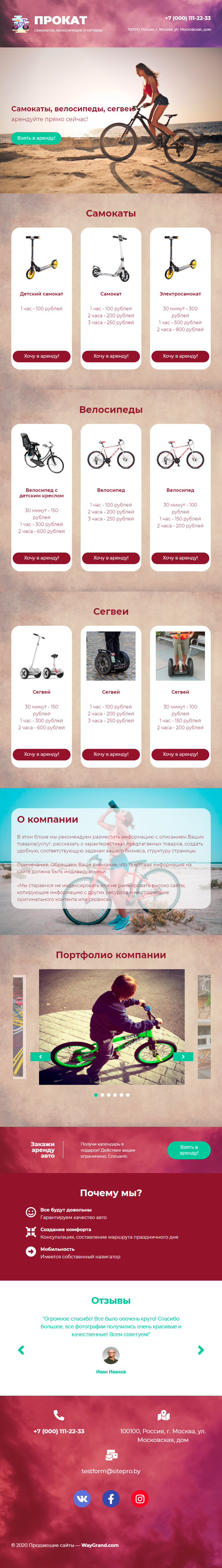 Закажите готовый продающий сайт лендинг #1907201 в Нижневартовске за 1-3 дня «под ключ»: свёрстан, отрисован и готов к рекламе. Тематика шаблона «Прокат самокатов и велосипедов».