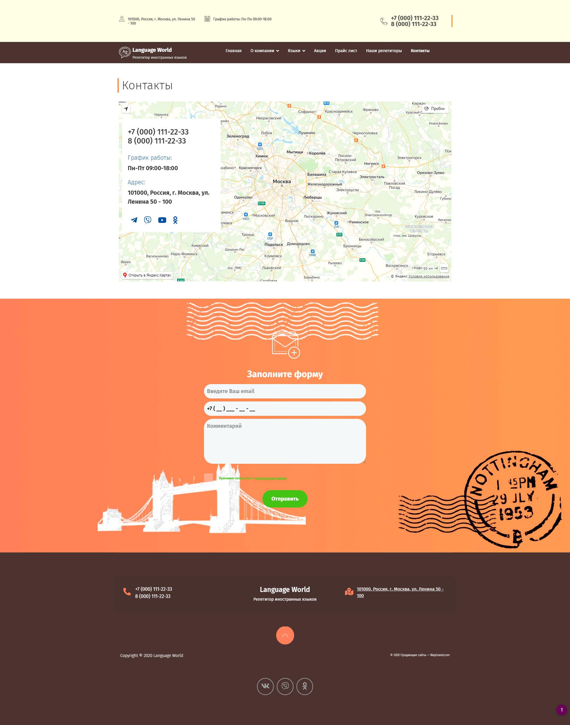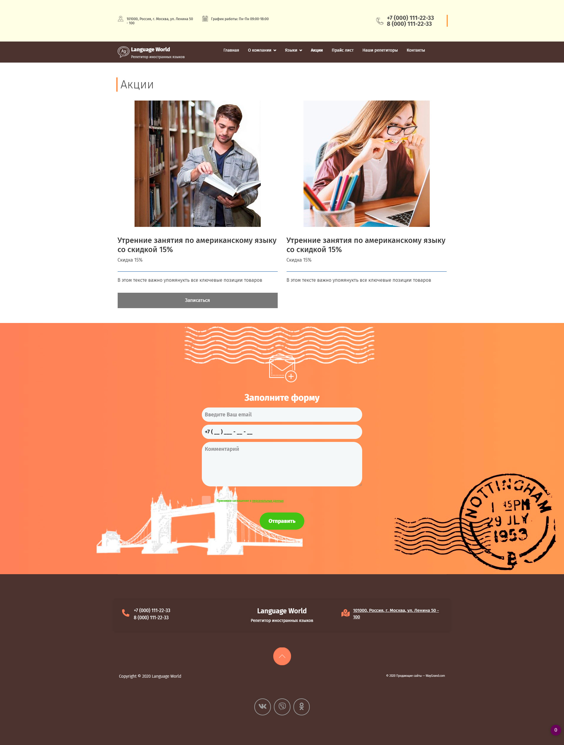 Закажите готовый продающий сайт визитка #1448303 в Нижневартовске за 5-7 дня «под ключ»: свёрстан, отрисован и готов к рекламе. Тематика шаблона «Курсы иностранных языков».