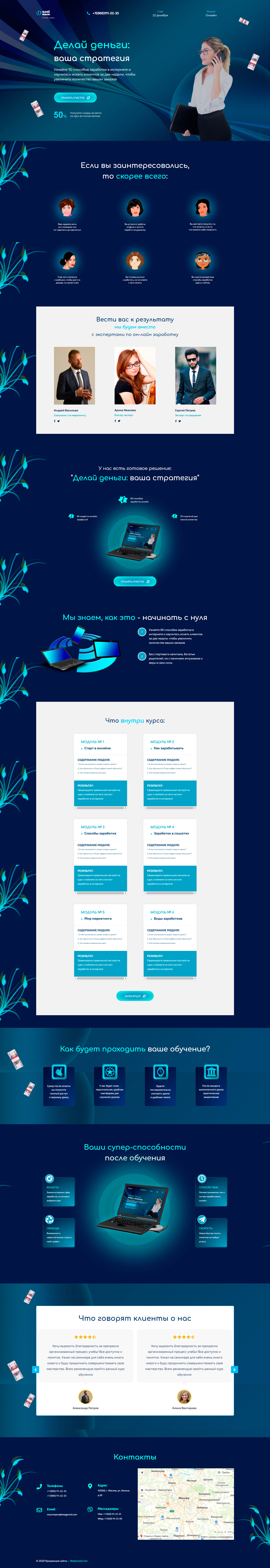 - Промоблок "Делай деньги: ваша стратегия" с кнопкой призыва к действию "Принять участие"