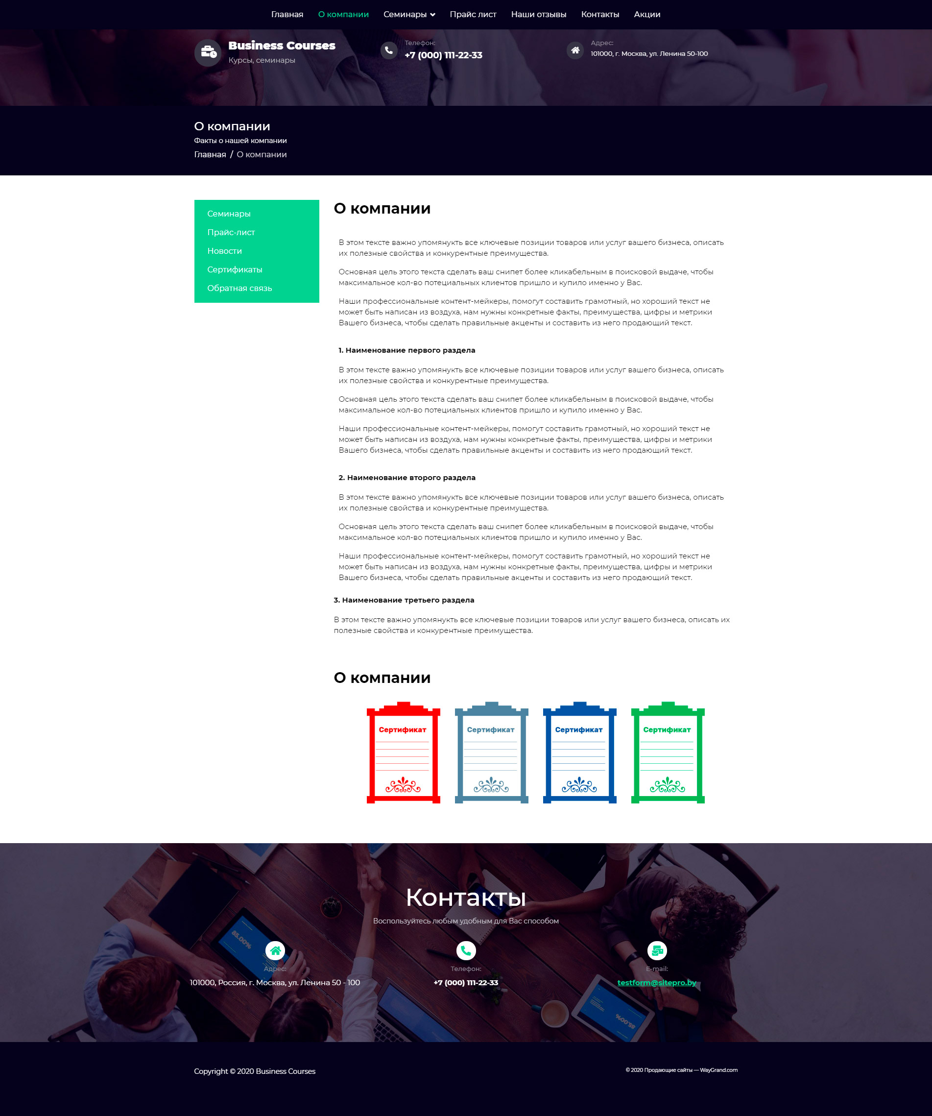 Закажите готовый продающий сайт визитка #1448303 в Нижневартовске за 5-7 дня «под ключ»: свёрстан, отрисован и готов к рекламе. Тематика шаблона «Бизнес курсы и семинары».