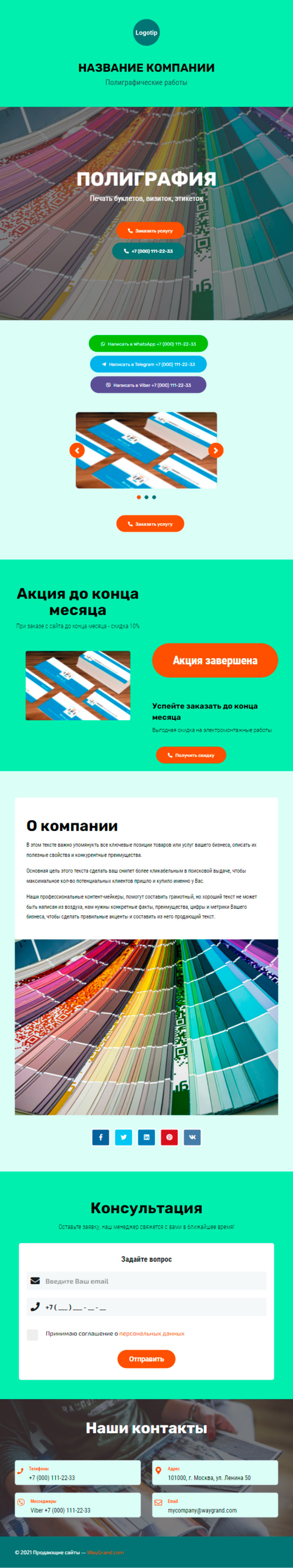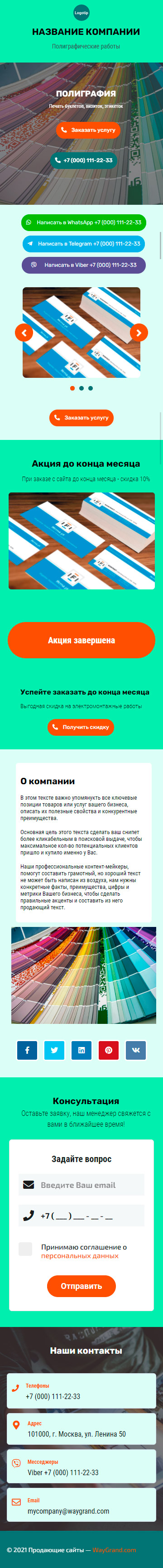 Закажите готовый продающий сайт визитка #1826101 в Нижневартовске за 5-7 дня «под ключ»: свёрстан, отрисован и готов к рекламе. Тематика шаблона «Полиграфия».