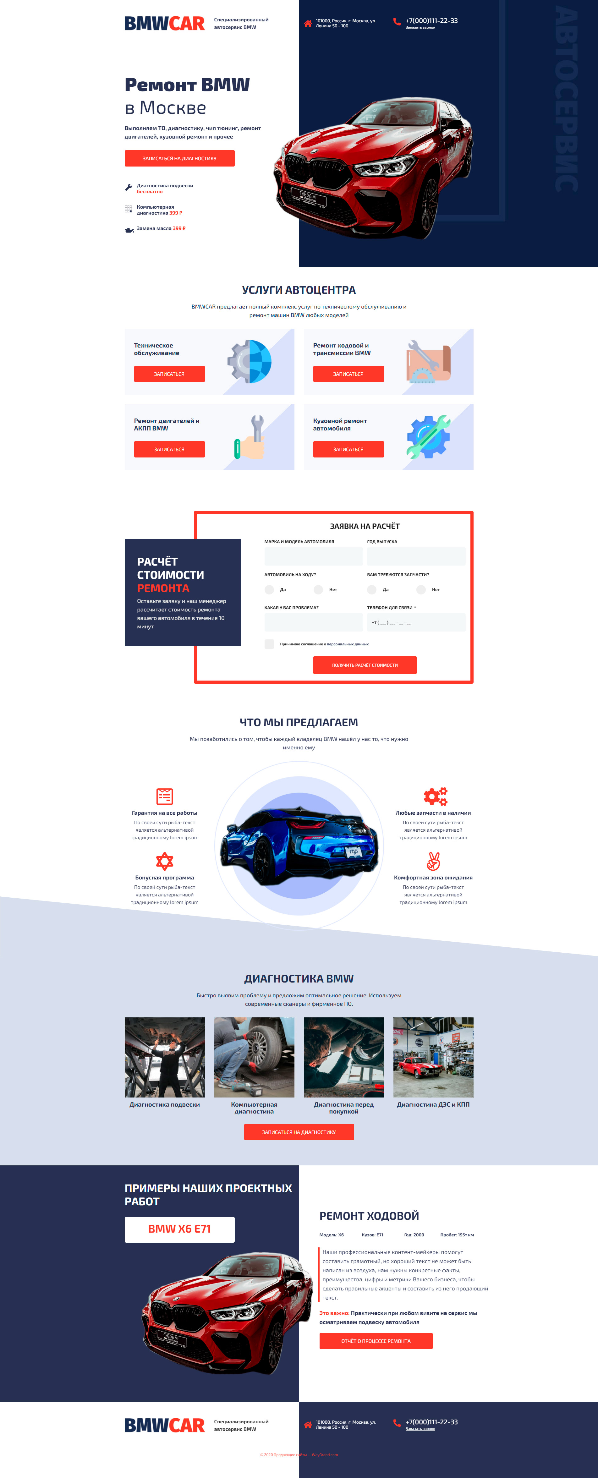 Закажите готовый продающий сайт лендинг #0210202 в Нижневартовске за 1-3 дня «под ключ» по выгодным ценам на WayGrand: свёрстан, отрисован и готов к рекламе. Тематика шаблона «Ремонт BMW».