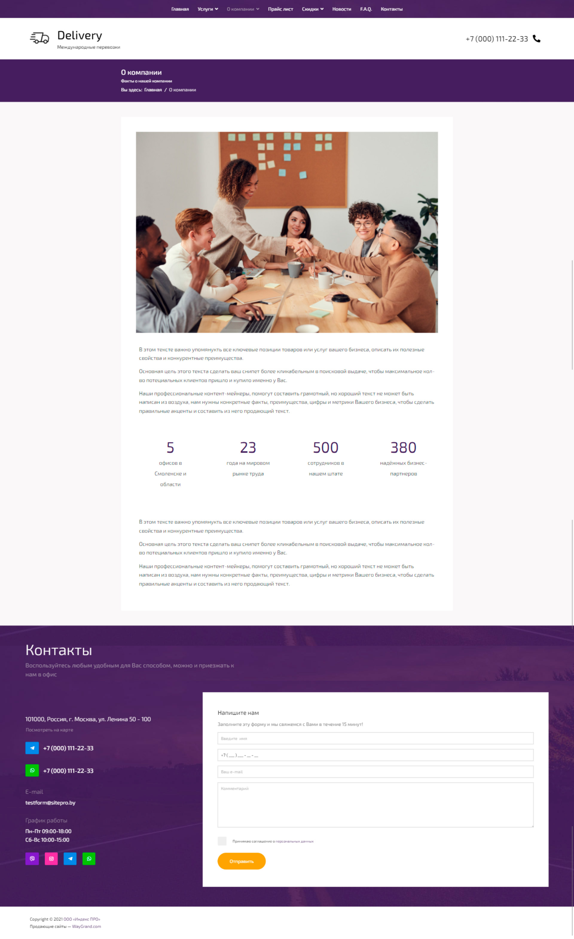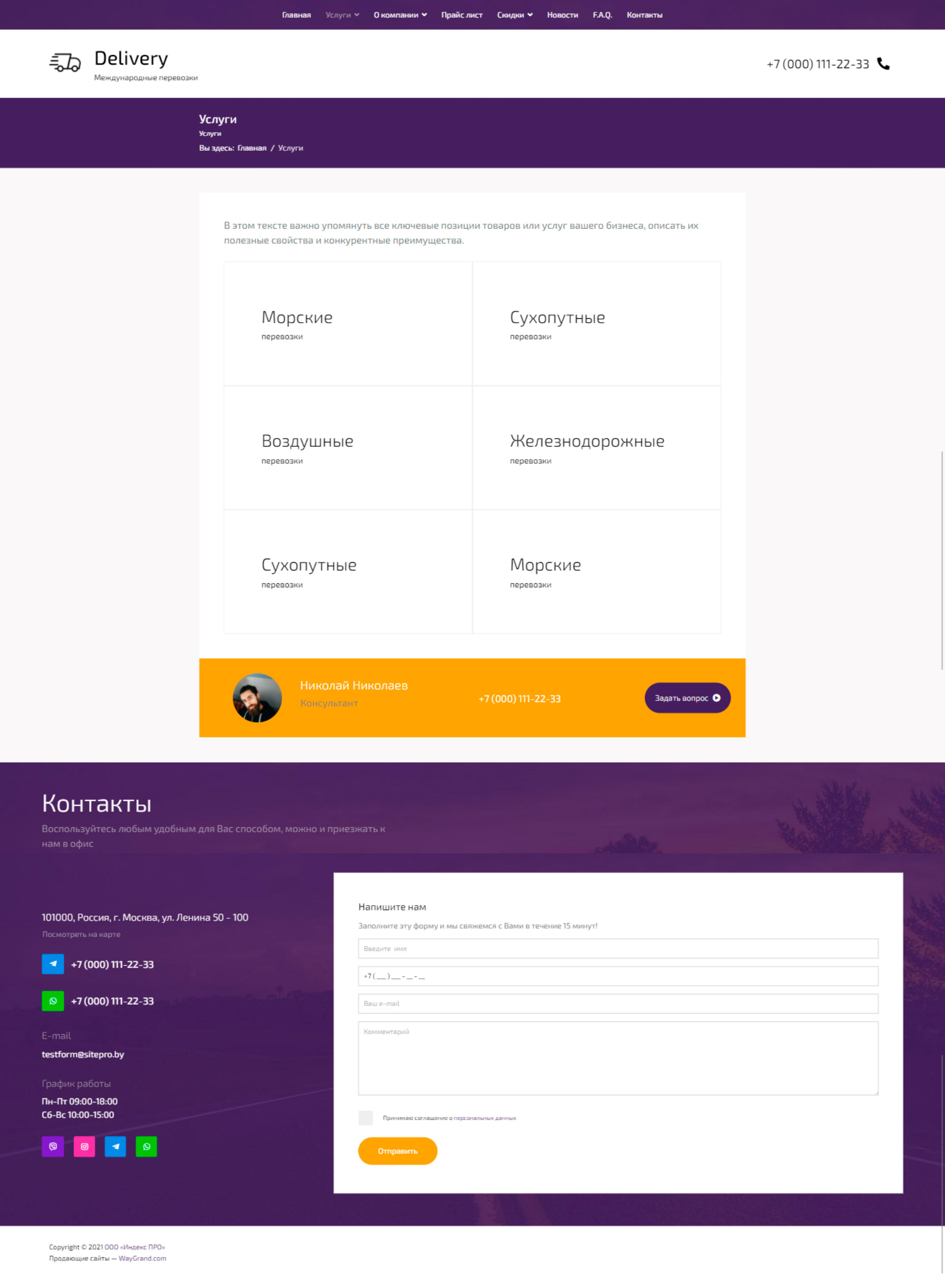 Закажите готовый продающий сайт визитка #2530302 в Нижневартовске по доступным ценам на waygrand. Тематика шаблона «Международные перевозки».