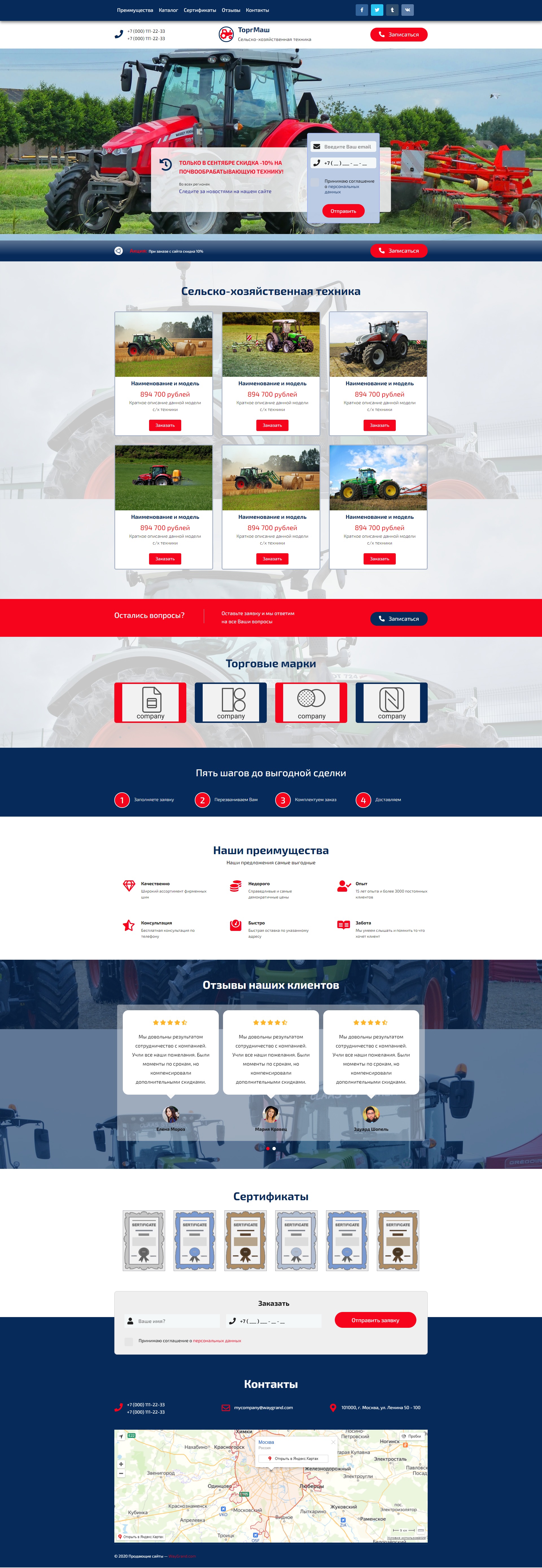 Закажите готовый продающий сайт лендинг #2553202 в Нижневартовске за 1-3 дня «под ключ»: свёрстан, отрисован и готов к рекламе. Тематика шаблона «Сельско-хозяйственная техника».