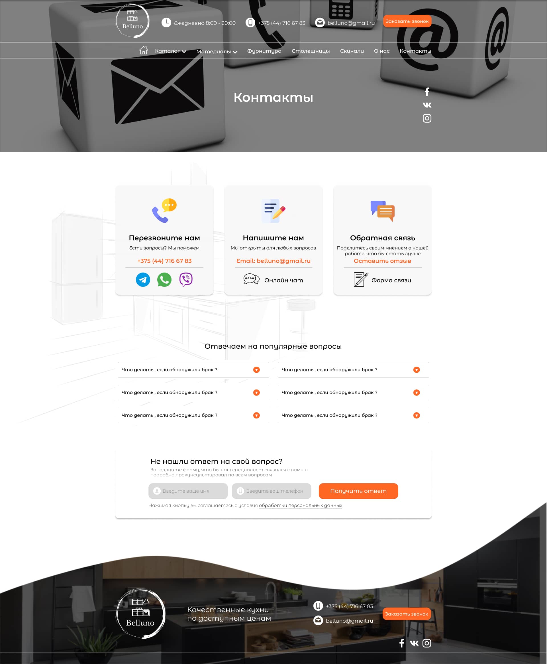Закажите готовый продающий сайт визитка #282 в Нижневартовске за 5-7 дня «под ключ»: свёрстан, отрисован и готов к рекламе. Тематика шаблона «Кухни».