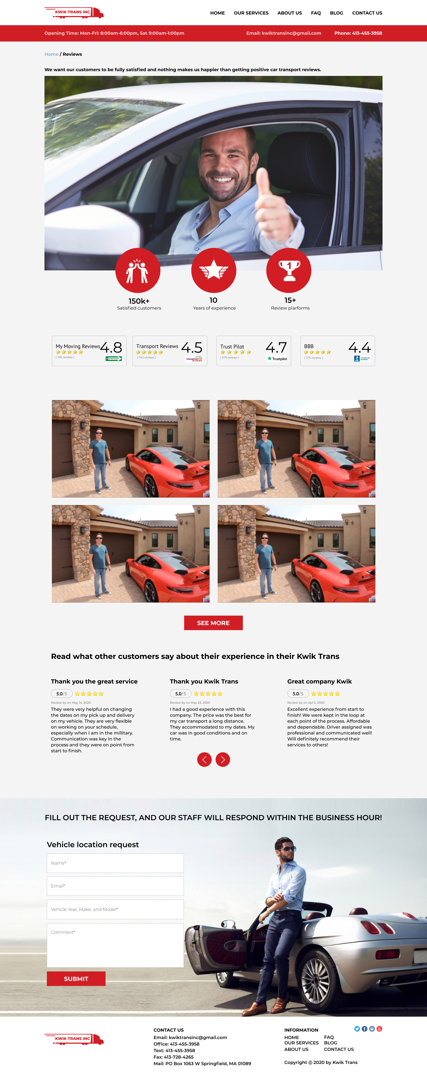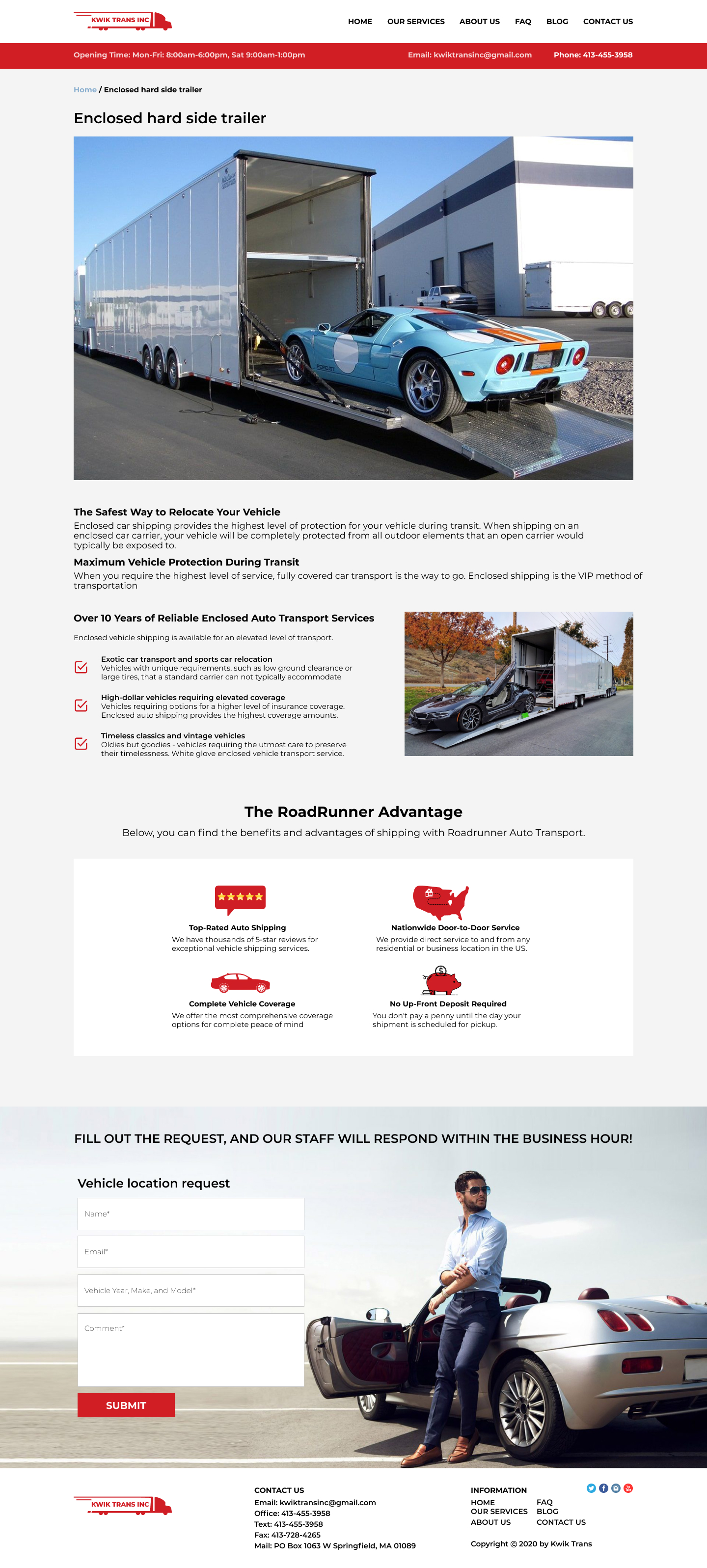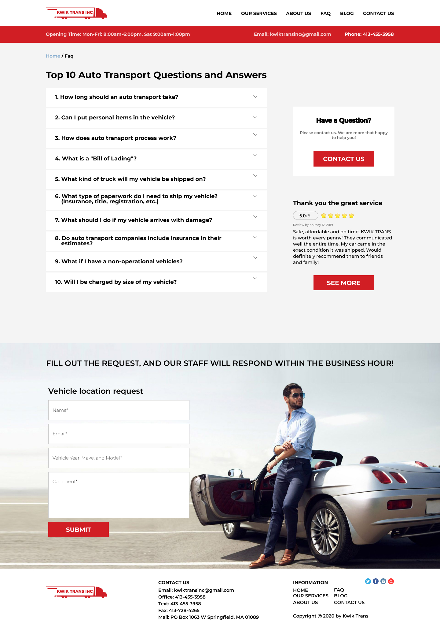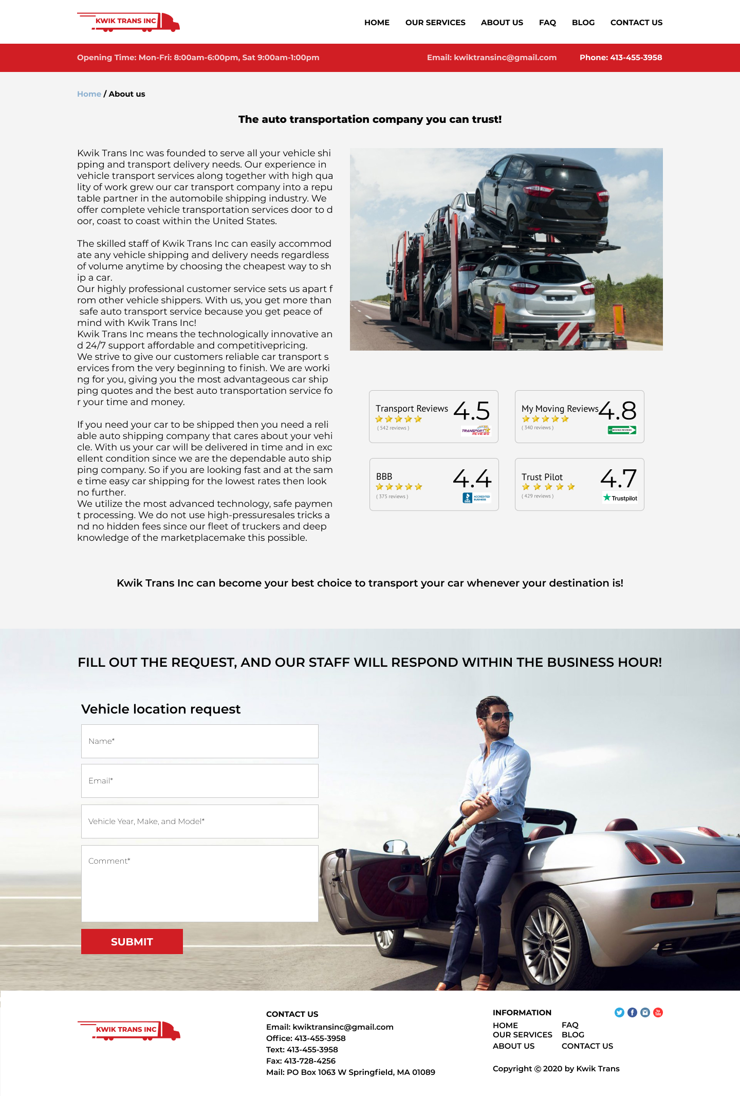 Закажите готовый продающий сайт визитка #223 в Нижневартовске за 5-7 дня «под ключ»: свёрстан, отрисован и готов к рекламе. Тематика шаблона «Safe & Reliable National Auto Transport».